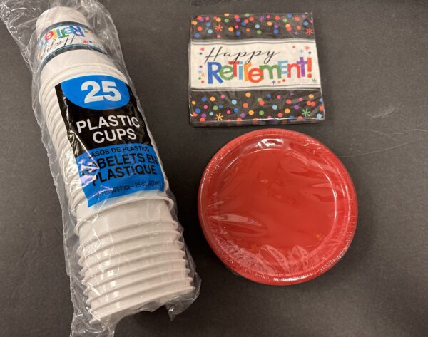 | Items | Lunch Napkins, Solid Color Plates, Plastic Cups, Sash, Pennant Banner, Ribbon, Yard Sign, Mug |